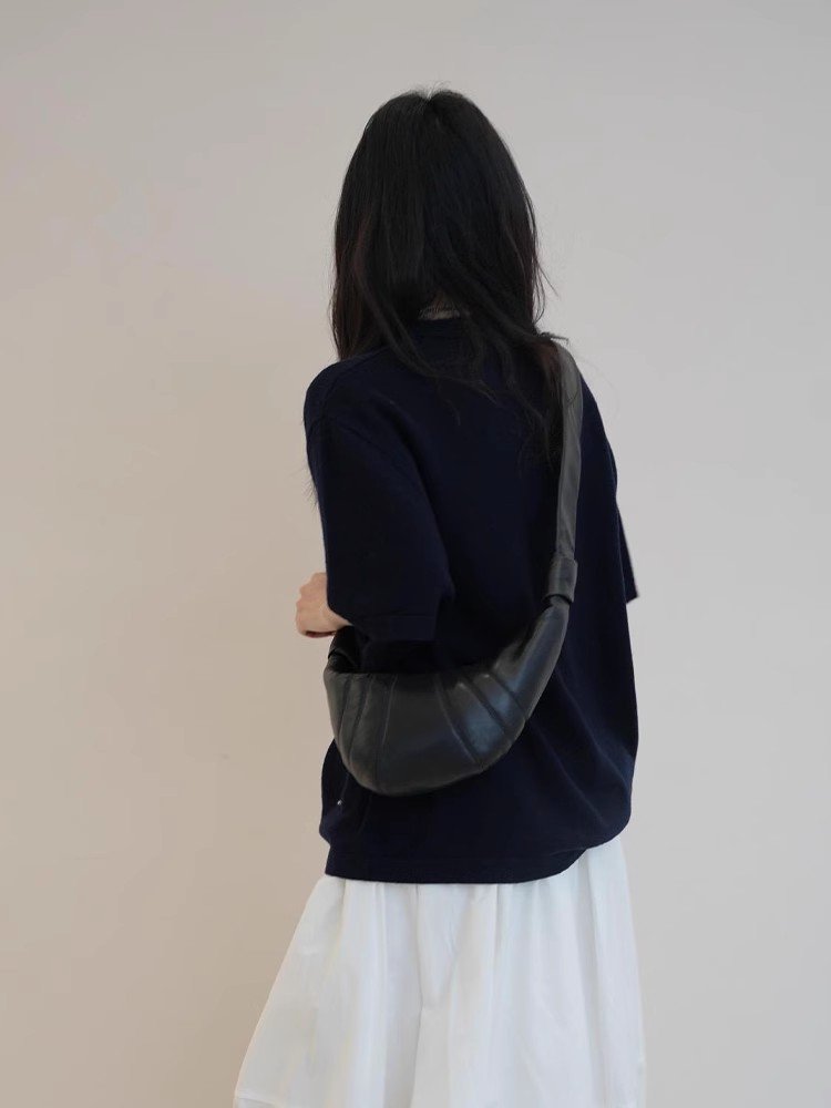 韩系藏青色亮片独特别致小上衣设计感短袖女