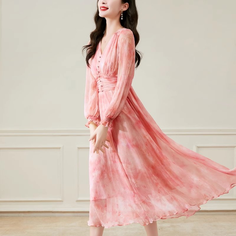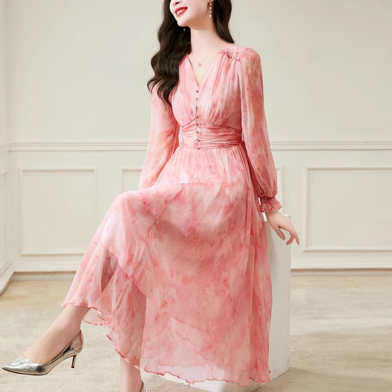 真丝顺滑,轻盈如羽,夏日内敛奢华之选,绽放女性温婉光彩。连衣裙真丝连衣裙桑蚕丝连衣裙