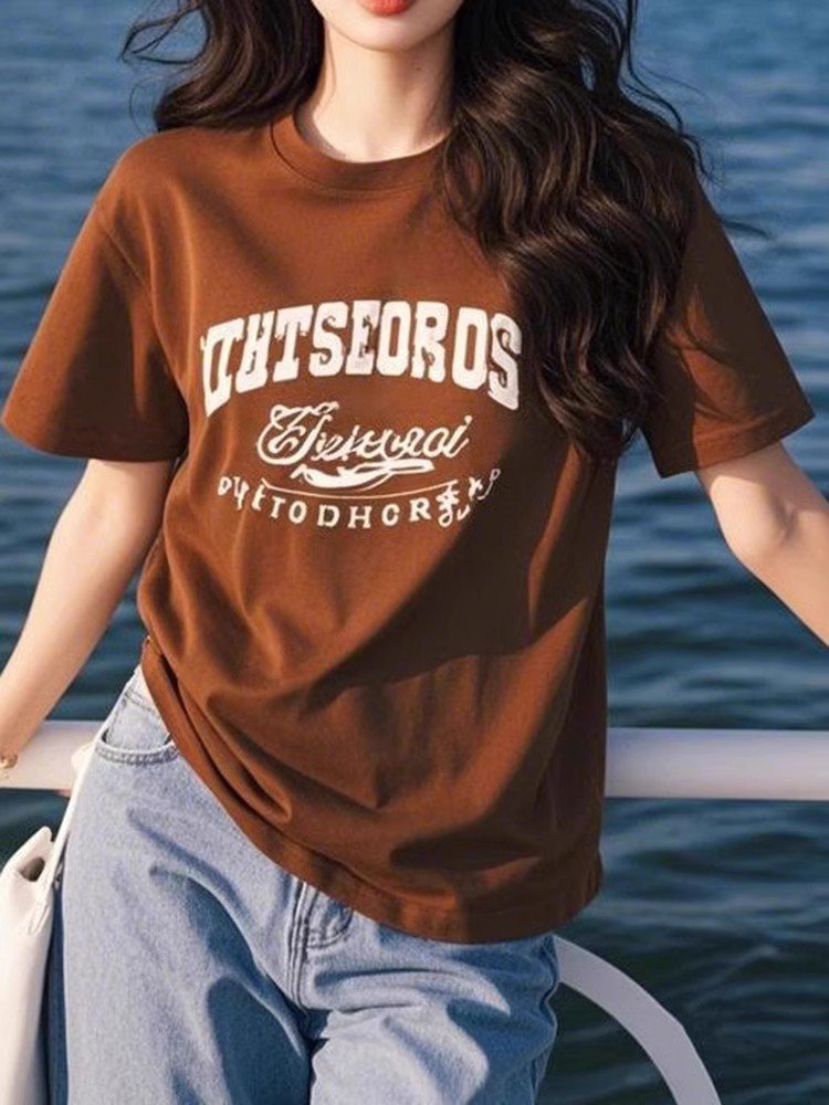 咖色短袖正肩显瘦t恤夏2025新款春季韩