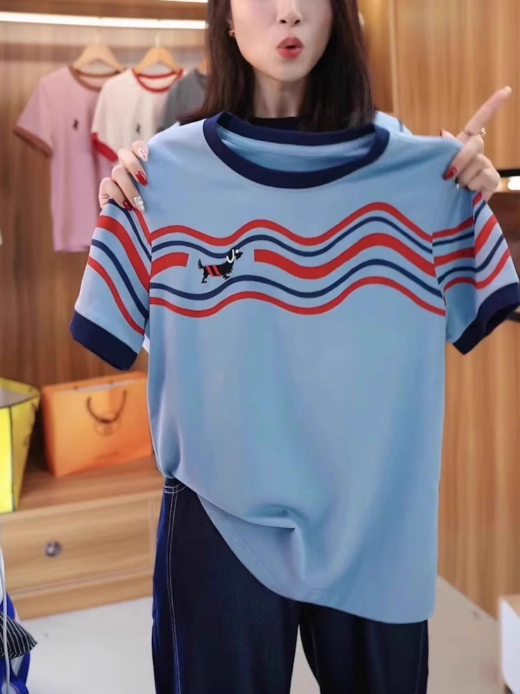小众不撞款的蓝色小狗短袖T恤女春2025