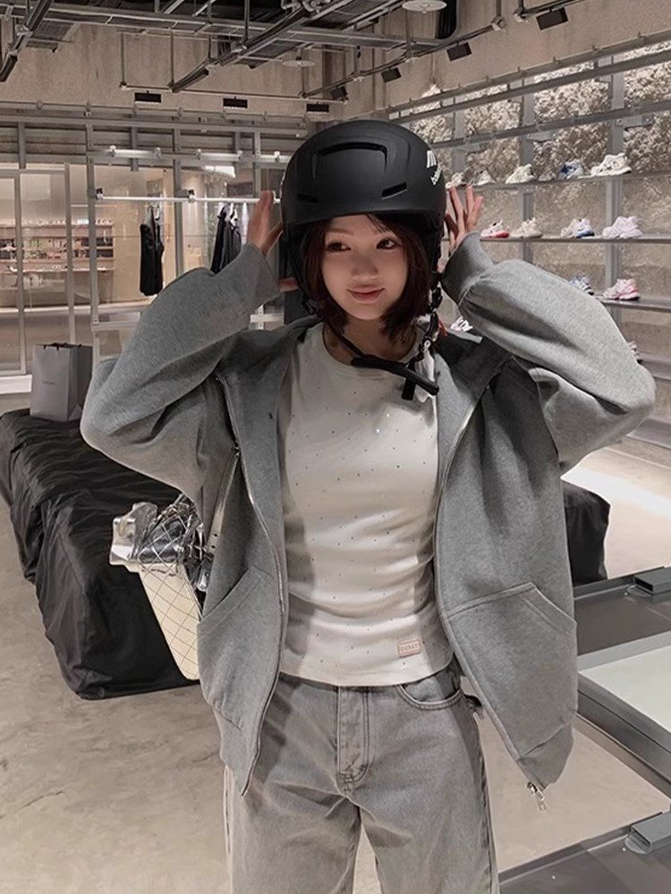 法式白色烫钻圆领修身独特绝美小上衣女夏季