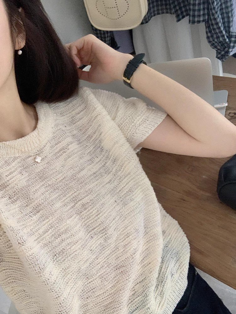 2025欧货爆款针织冰丝泡泡袖t恤女短袖