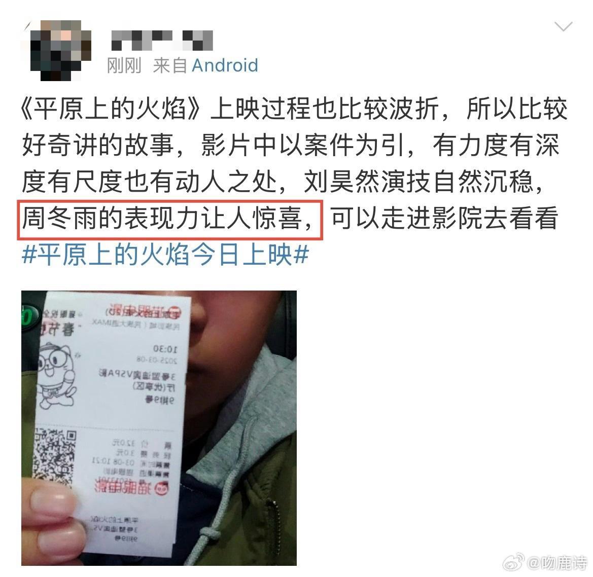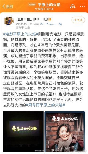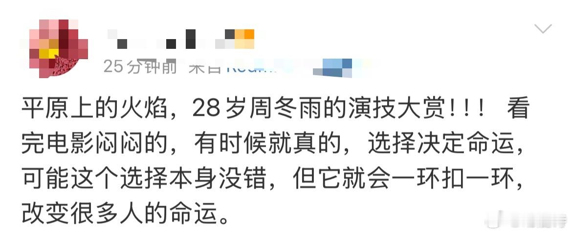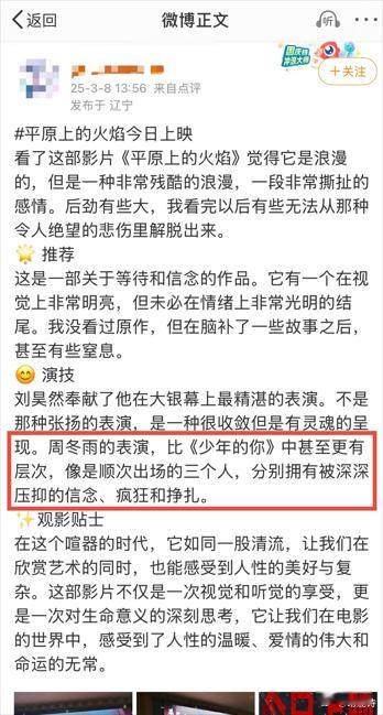 周冬雨教科书级别表情管理每个眼神都充满了故事,在《平原上的火焰》中通过表情传递了角色的复杂情绪。