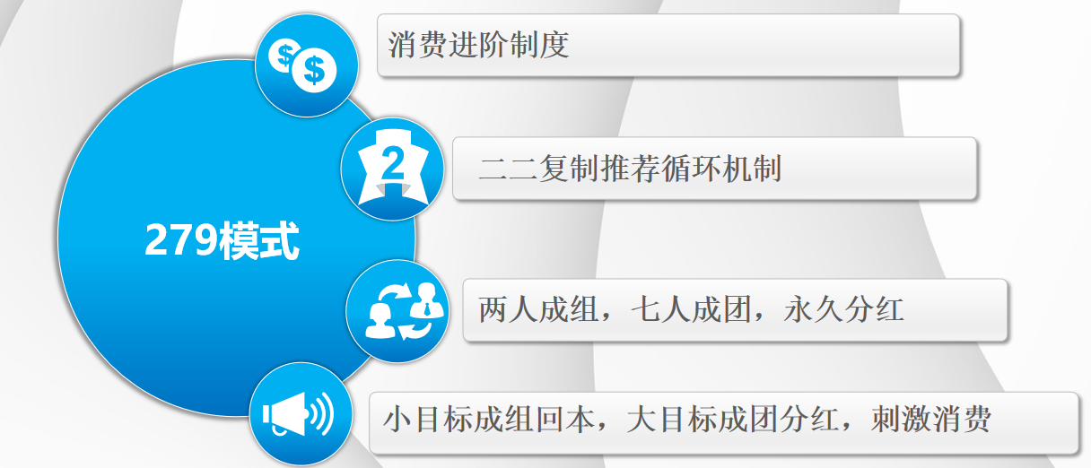:滑落 + 分红机制让团队互帮互助,不用老板鞭策也能主动推广。总结:老板的 “轻资产盈利神器”✅279 模式的精髓,是用简单规则撬动 “用户裂变 + 持续消费” 的双重盈利。不用老板大额投入、不用费心管理,靠 “两人成组、七人成团” 的轻量化设计,让流量自动来、收益不中断。