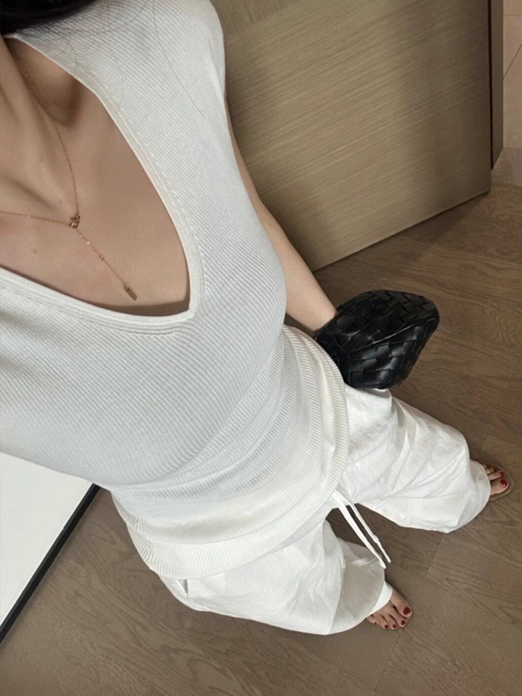 法式白色v领飞飞袖短袖t恤女夏季小个子短