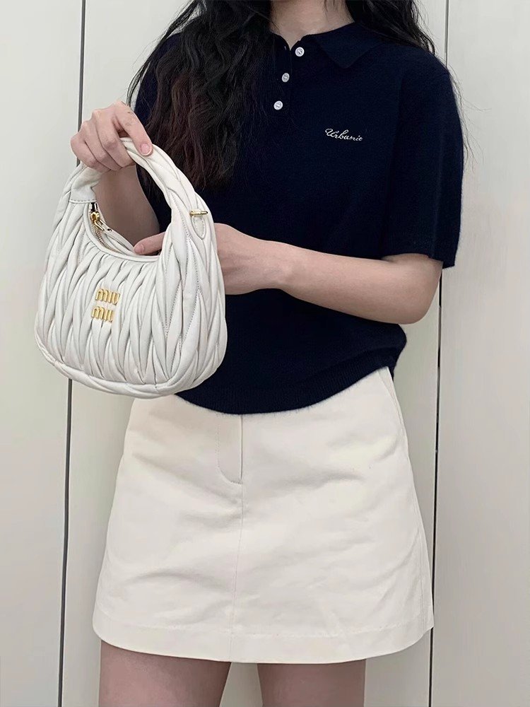 藏蓝色Polo领刺绣正肩短袖t恤女夏季小