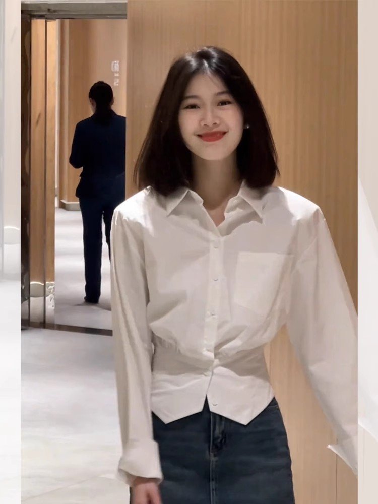 法式气质白色POLO衫衬衫春秋女上衣小个