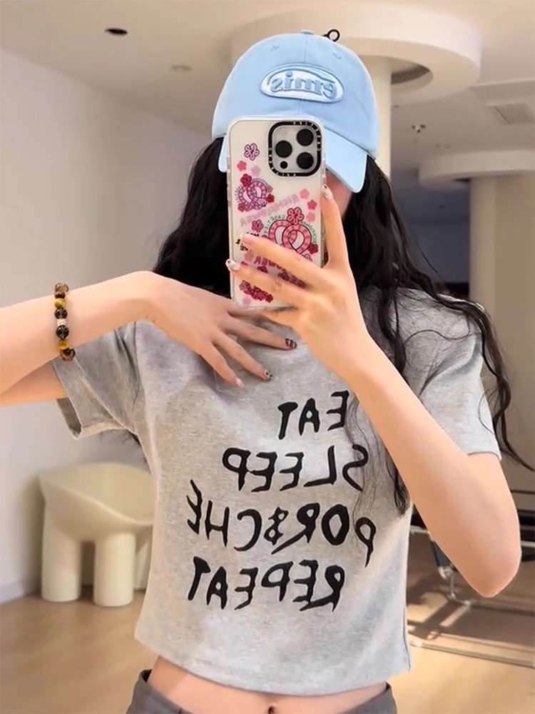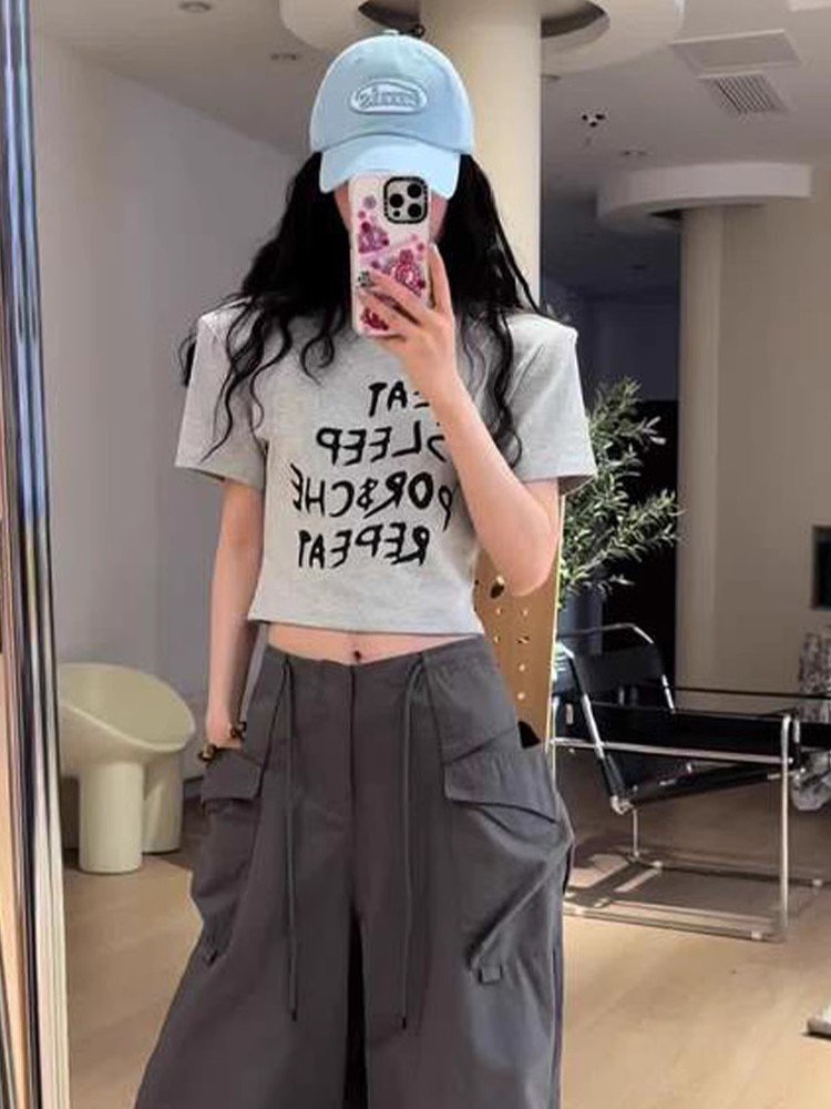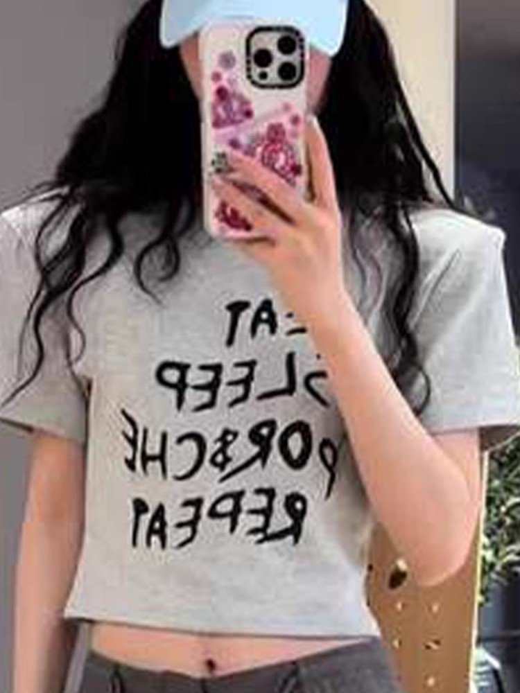 美式复古灰色字母印花短袖t恤女夏季小众独