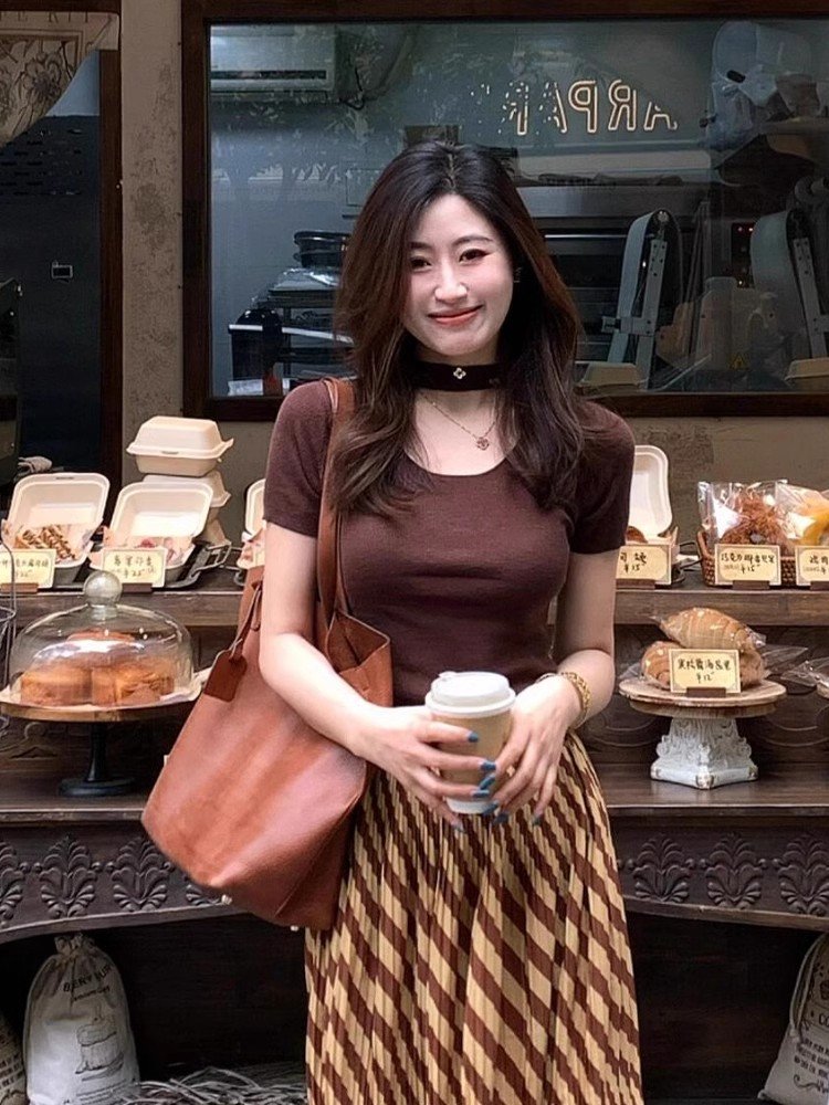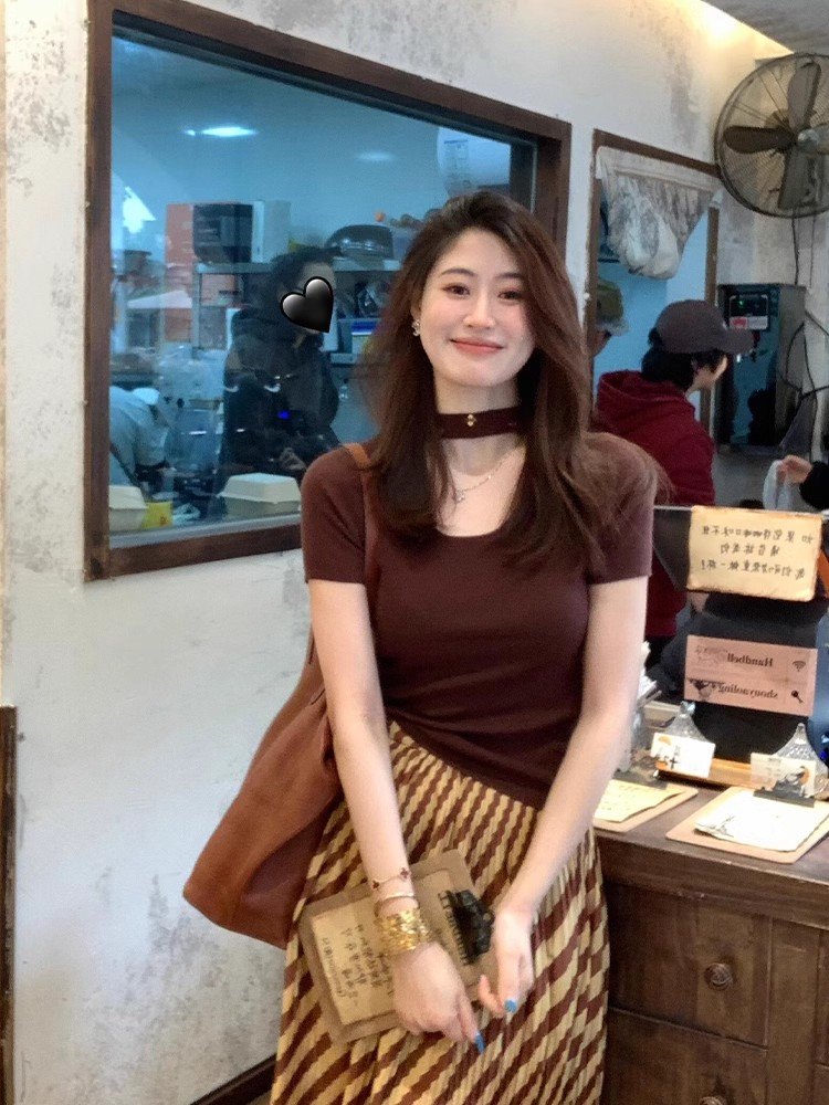 美式复古咖色镂空挂脖u领短袖t恤女夏夏季