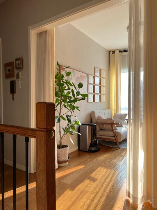 清晨的阳光洒进这个自然蓬勃的家里