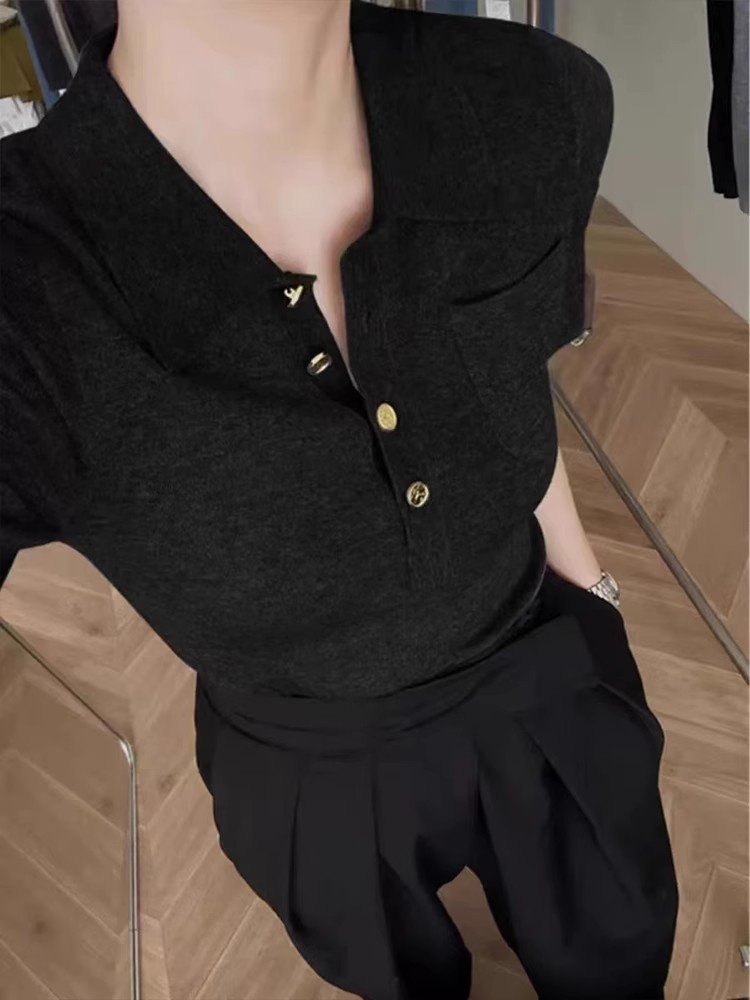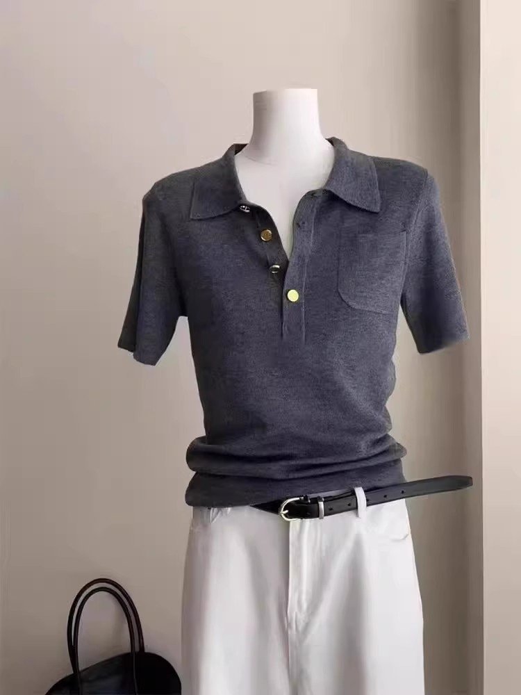 法式气质灰色冰丝POLO衫短袖正肩t恤女