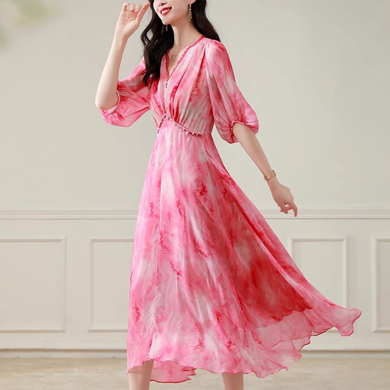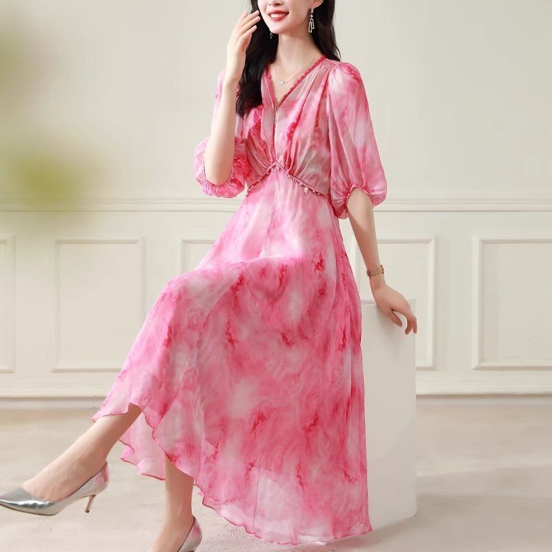 真丝顺滑,轻盈如羽,夏日内敛奢华之选,绽放女性温婉光彩。连衣裙真丝连衣裙桑蚕丝连衣裙