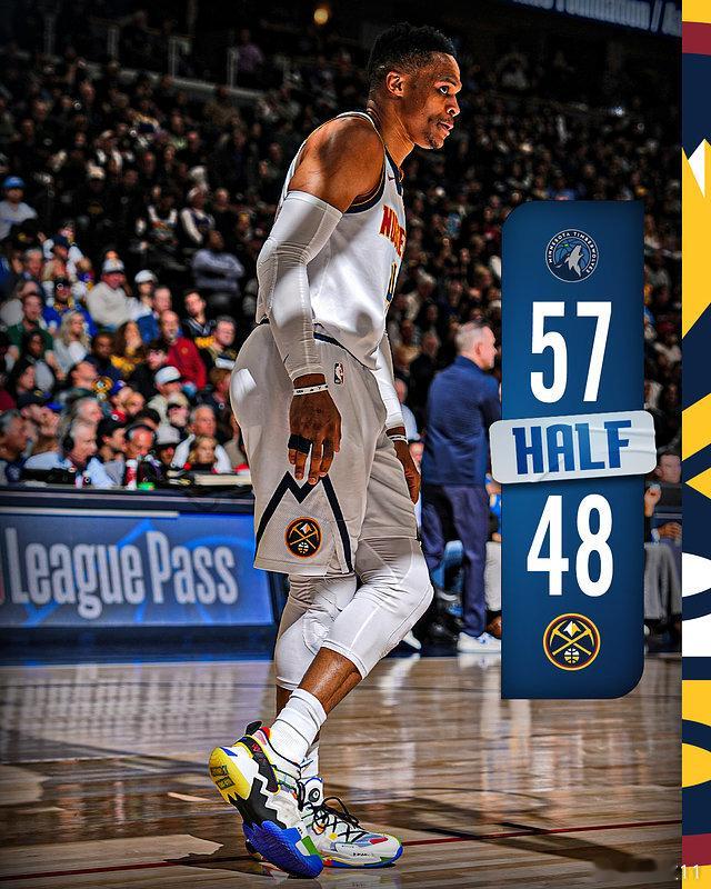 扛着球队前进!威少底线突破上篮,半场10投7中得到17分今天除了威少和约基奇,其