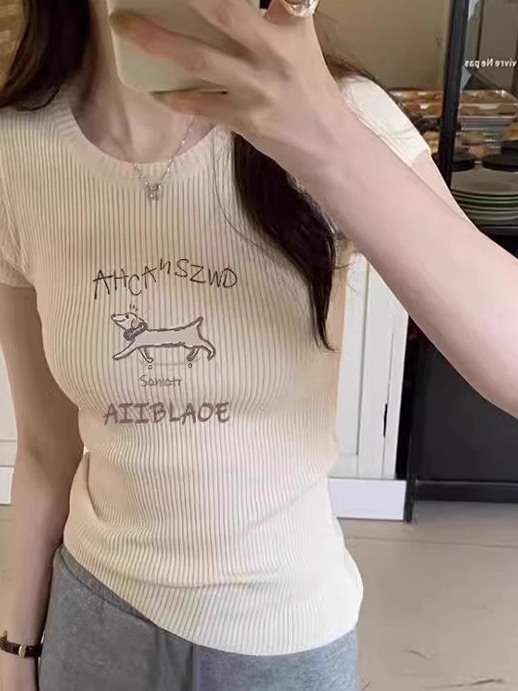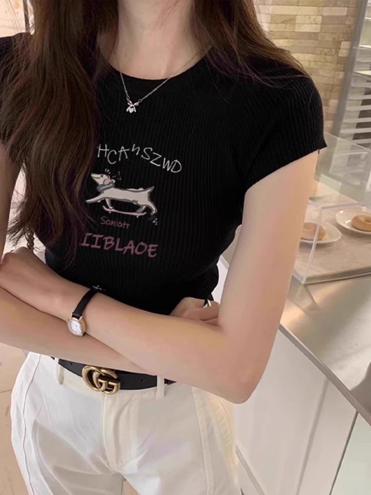 韩系黄色冰丝针织飞飞袖短袖t恤女夏季小个