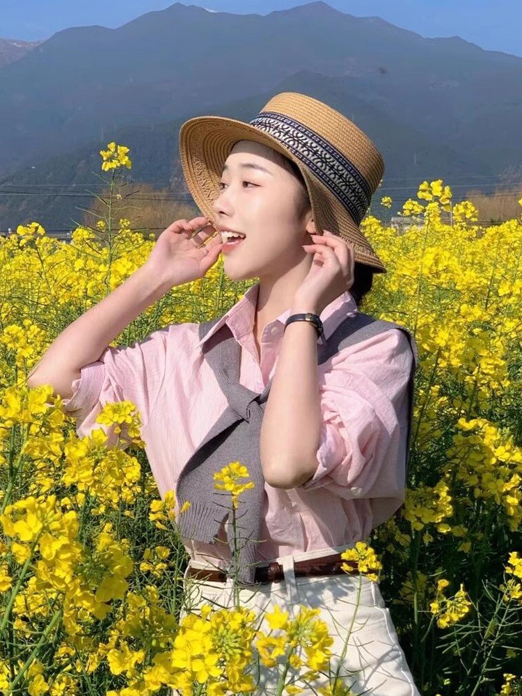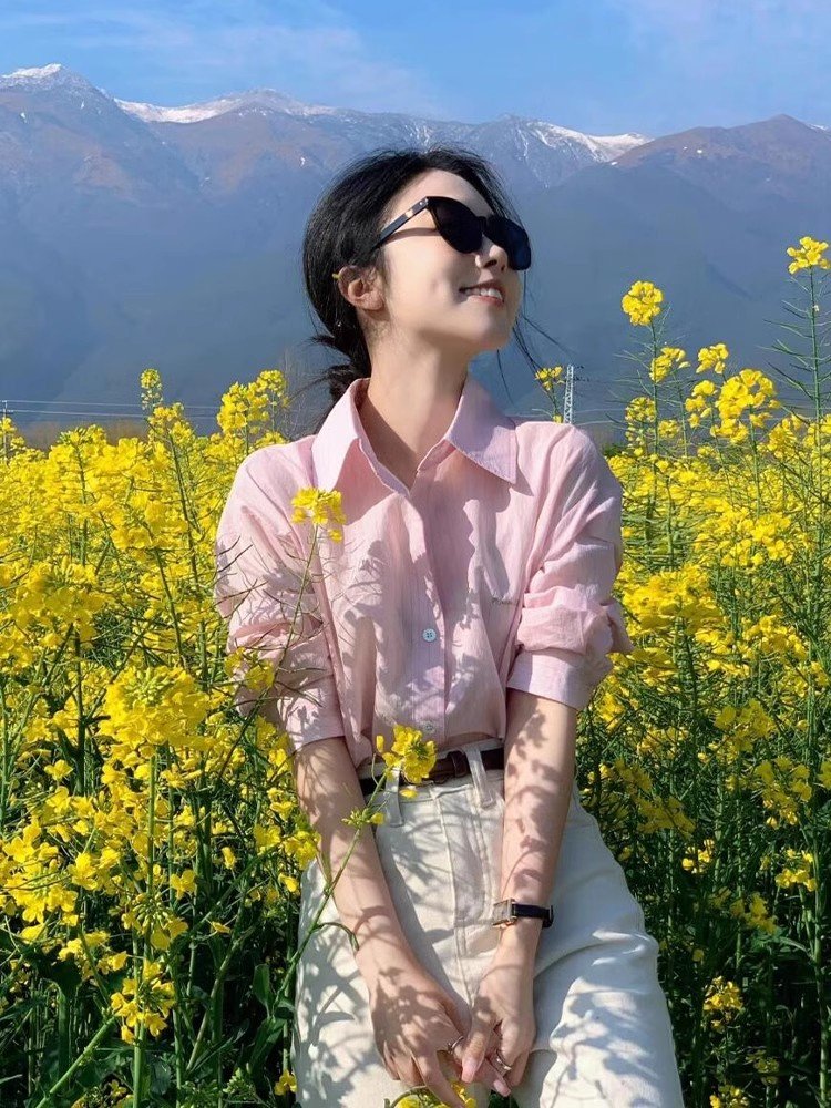 法式气质粉色Polo领长袖衬衫女早春小个