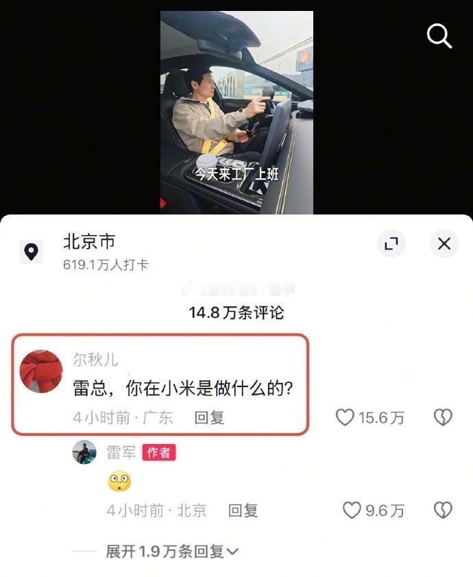 结果评论区网友们纷纷调侃:“雷总到底在小米是做什么的?”