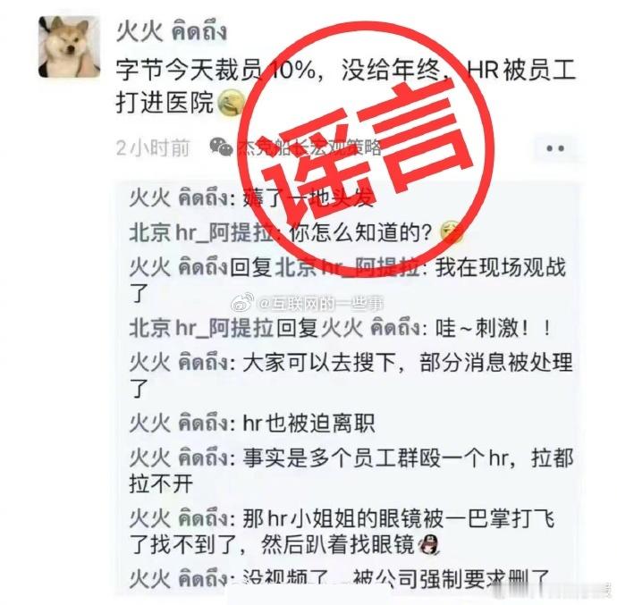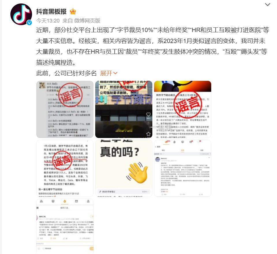字节官方辟谣啦!“字节裁员10%”“年终奖没了”“HR和员工互殴”,全是谣言!