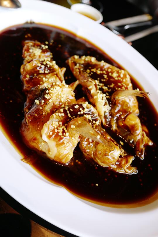 还有改良到第73版的西湖醋鱼,笋壳鱼的蒜瓣肉一丝丝竟然有点蟹柳的质感,这就是傅师傅追求的在醋鱼中吃出蟹味,很是精彩。据说春天的第74版要换一种鱼,期待一下。