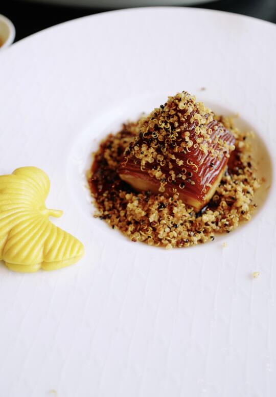 在金牌扣肉里藏上白果撒上藜麦,馅料应四季不同,也是一种趣味。