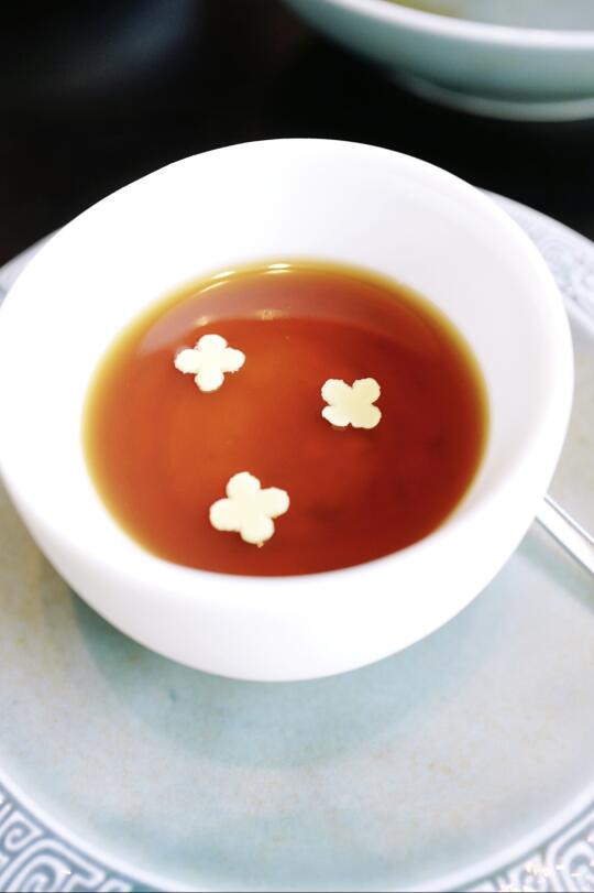 最后收尾的茶冻板栗泥,带着点微苦,深得我心。福建做茶宴的可以来学习一下这道甜品,超级好的。
