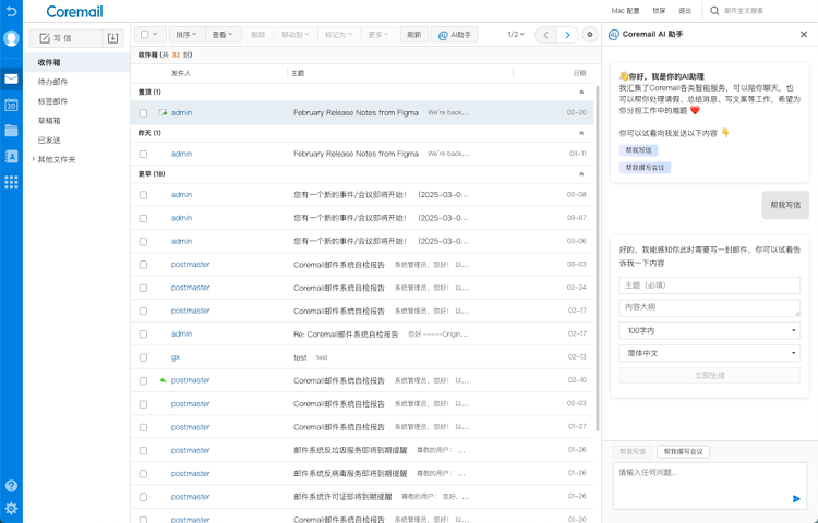 Coremail接入DeepSeek后,已覆盖撰写、美化、总结多种邮件办公场景,全面提升邮件办公效率。