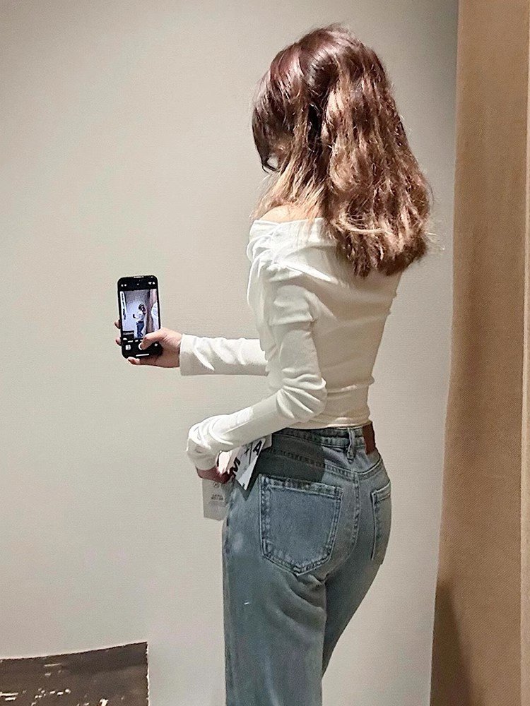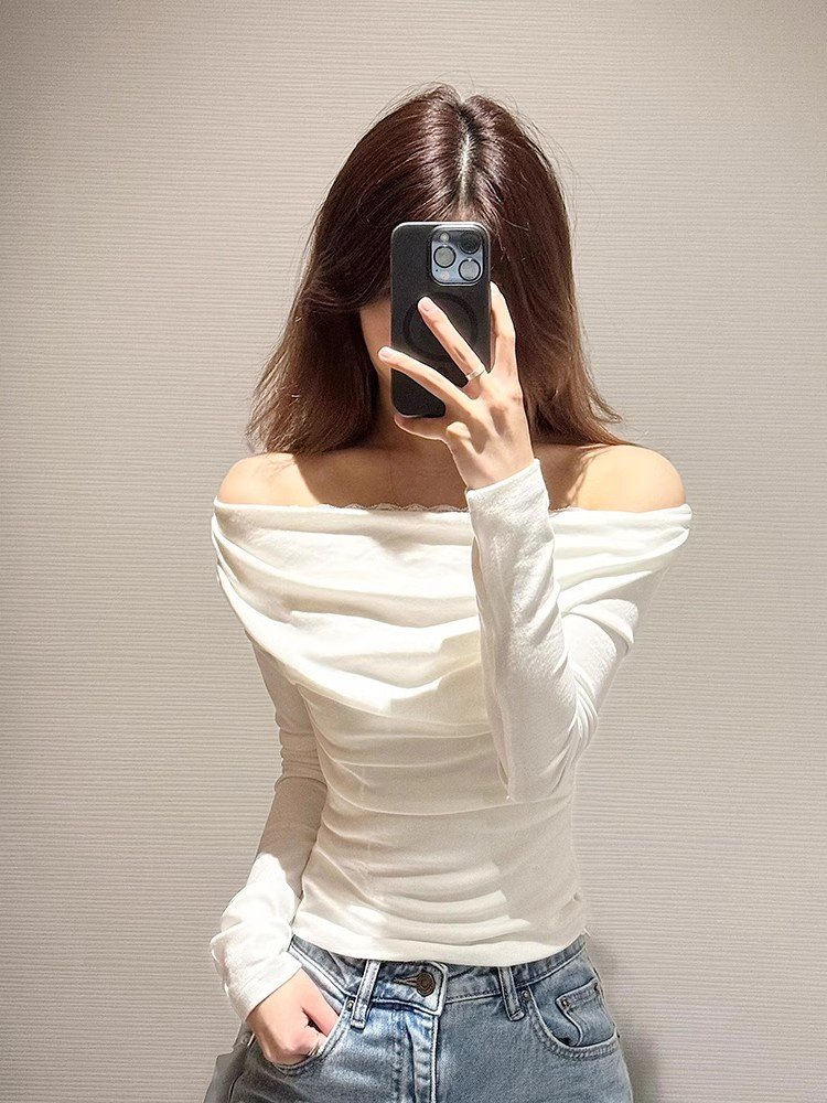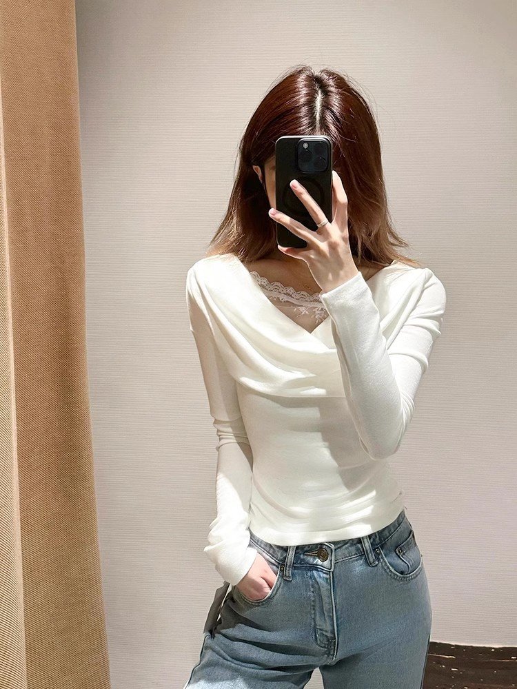 法式白色荡领不规则清纯系掐腰上衣女早春小