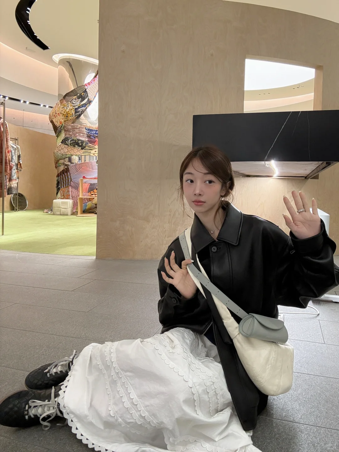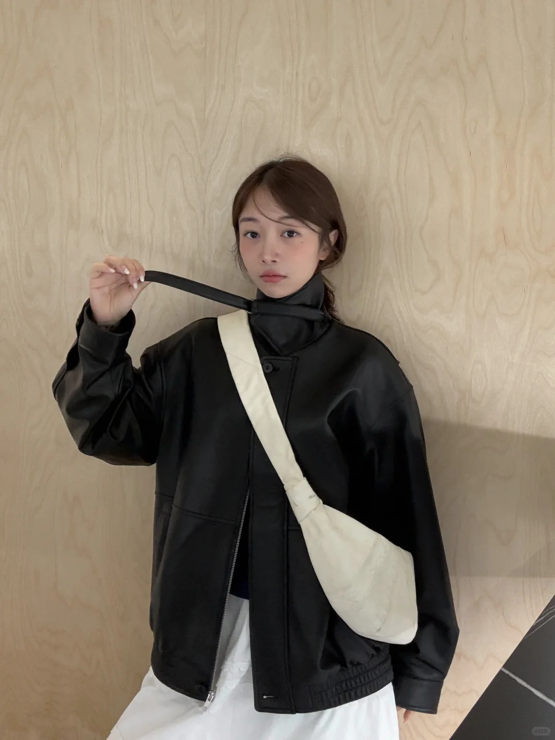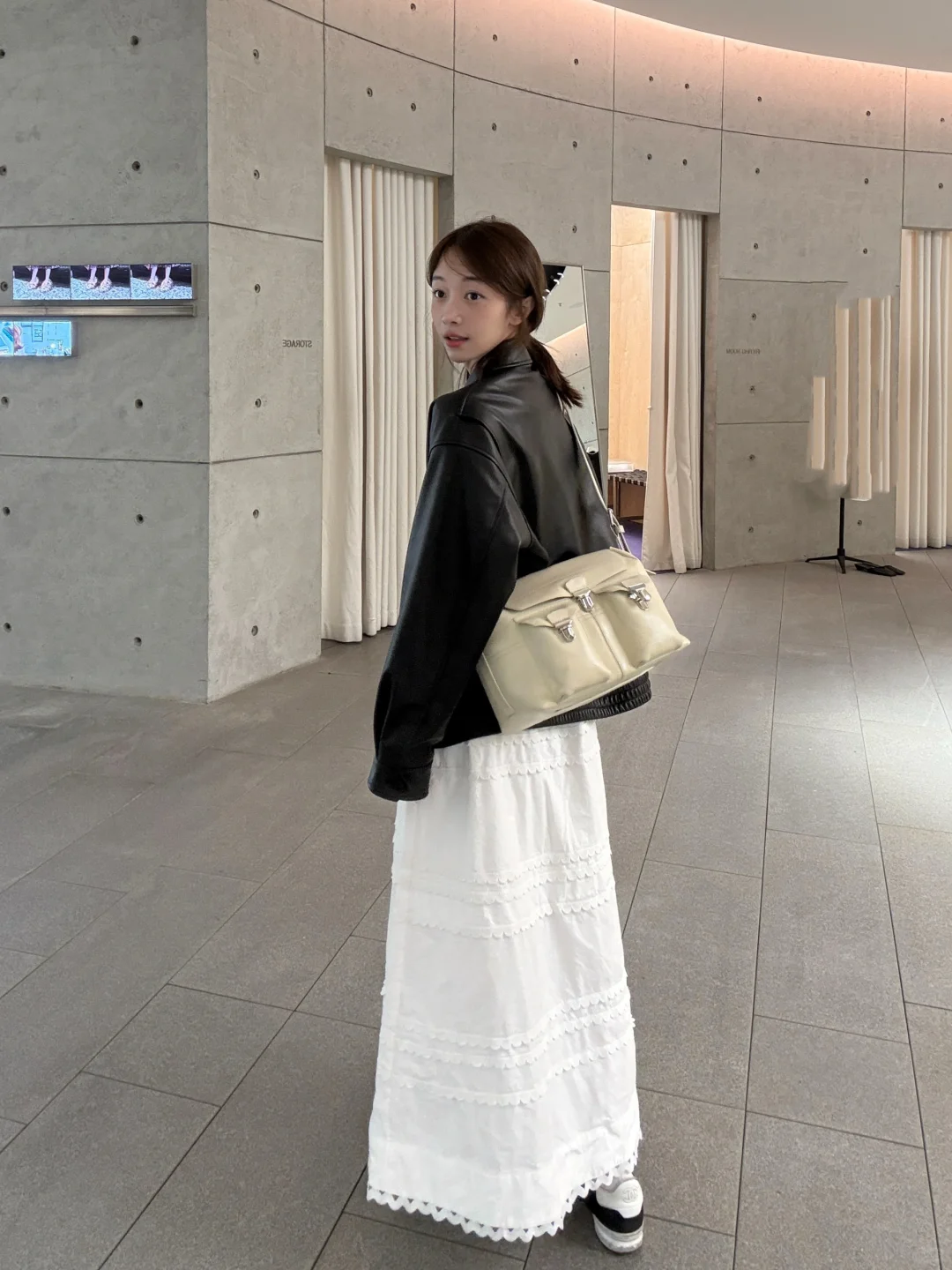 皮衣配白半裙