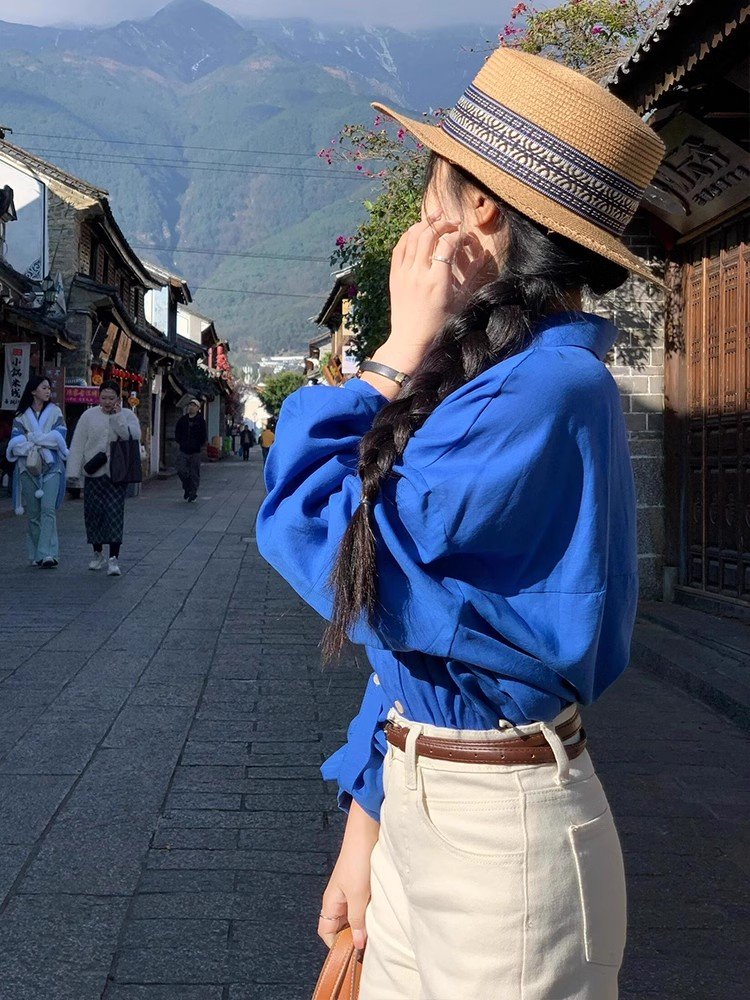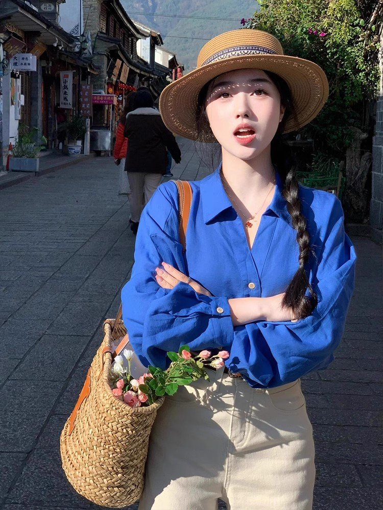 克莱因蓝POLO衫衬衣春秋女上衣外搭轻奢