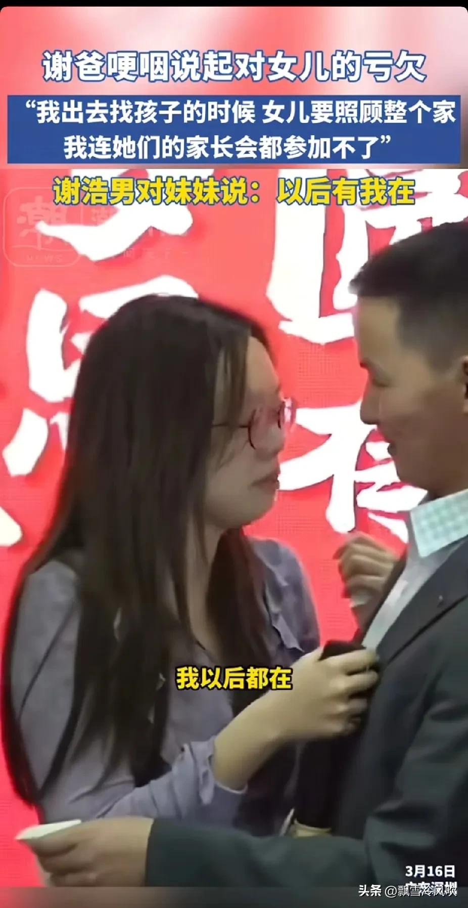 谢浩男回家,最高兴的是妹妹。她说她终于没有那么大的压力了,谢爸出去找浩男的时候。妹妹要负责照顾全家,现在哥哥回来了,妹妹有了依靠,浩南告诉妹妹,以后我都在谢浩男 谢浩男认亲 谢浩男寻亲