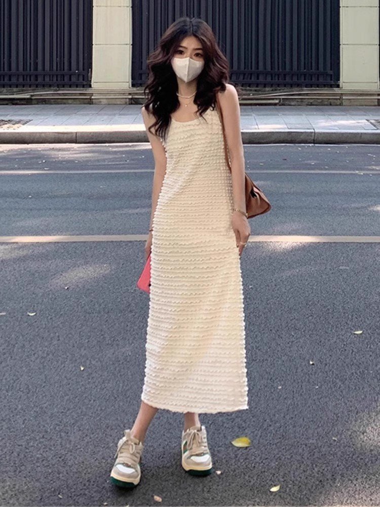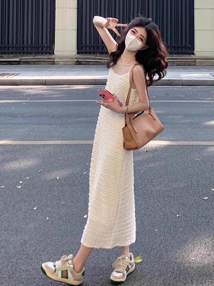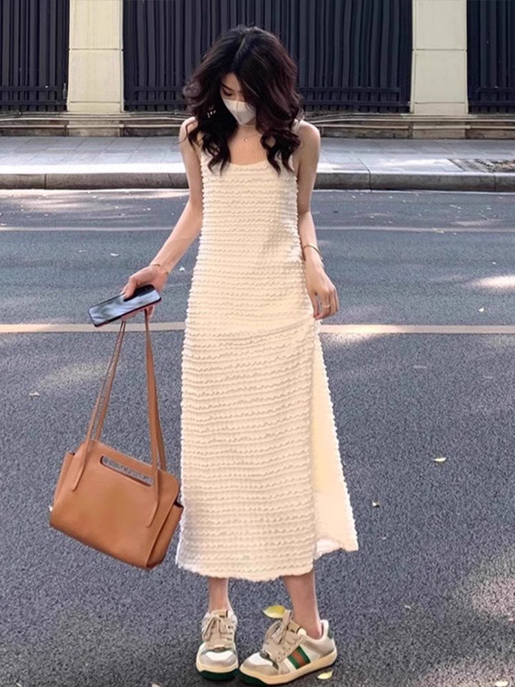 海边度假高级感轻奢沙滩吊带裙法式小个子白