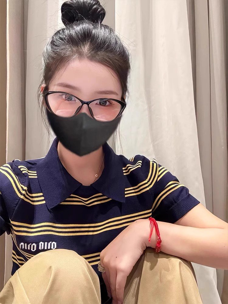 宽松条纹polo衫正肩短袖t恤女夏202