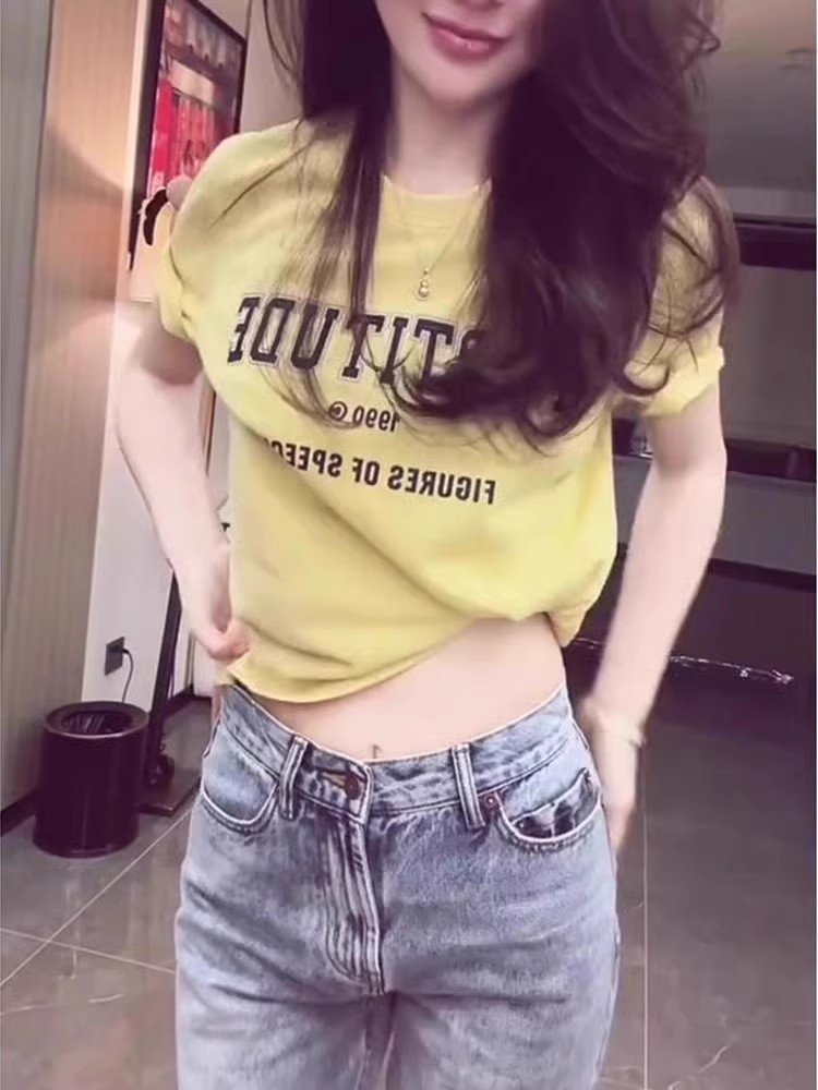 美式复古辣妹风穿搭黄色短袖2025夏季新