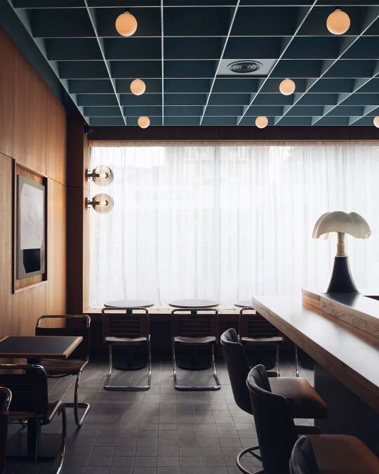 🤍🍵 店内点缀着经典的 Martinelli Luce Pipistrello 台灯🦇💡,复古与现代交融,氛围感直接拉满!