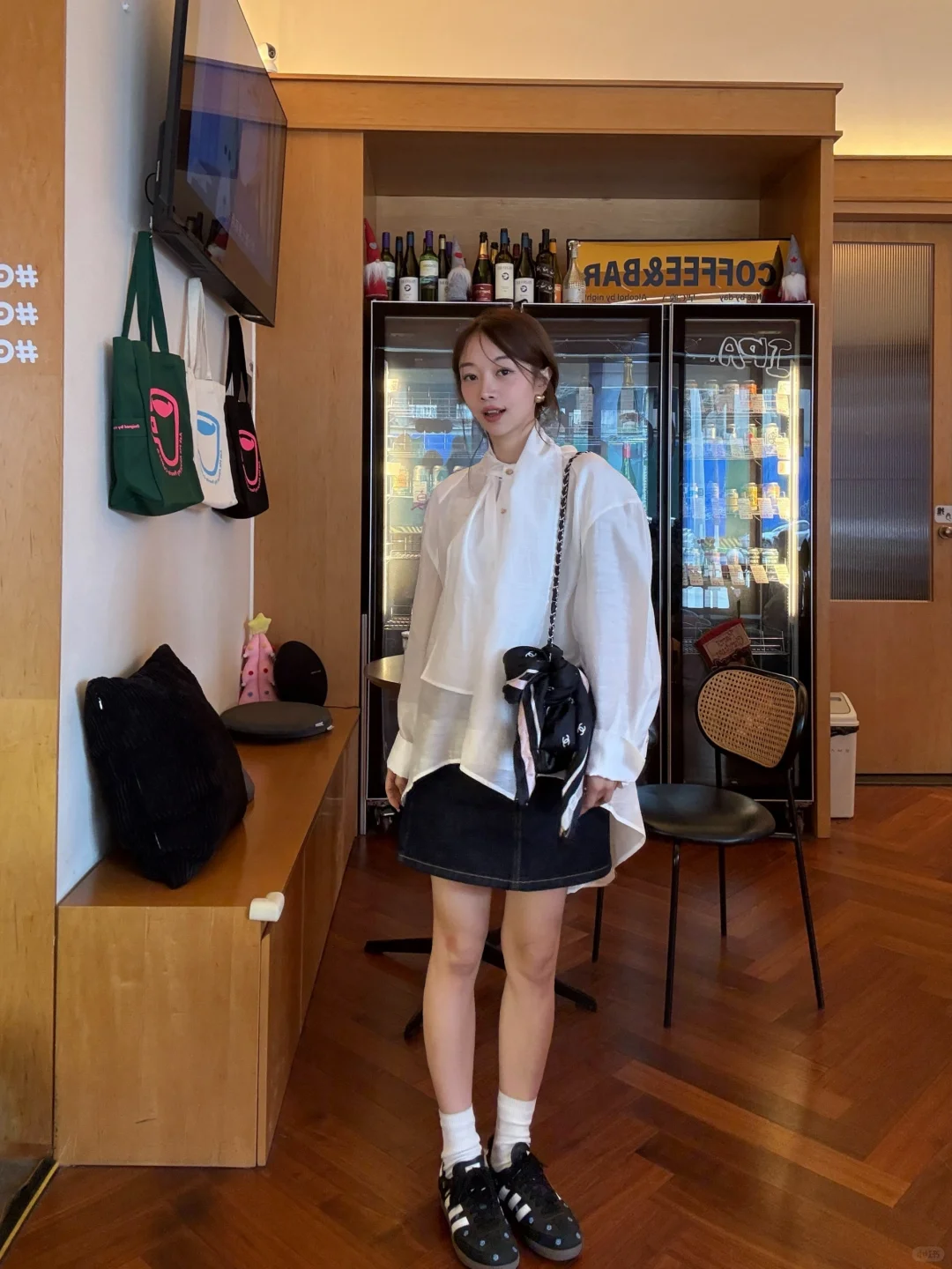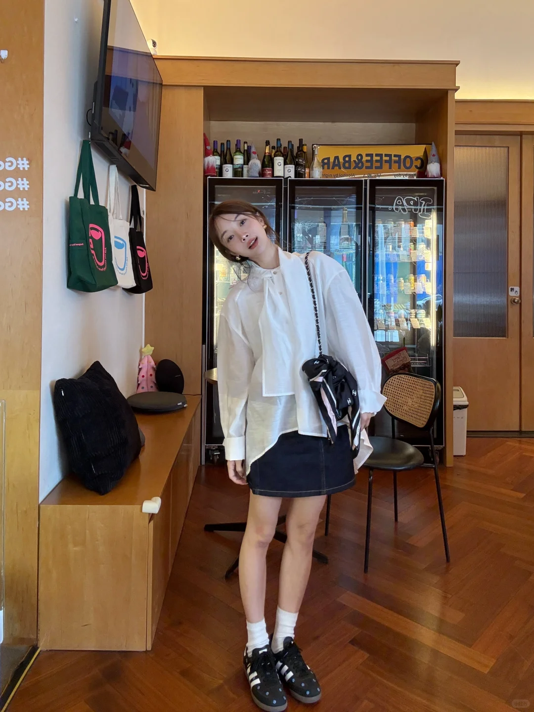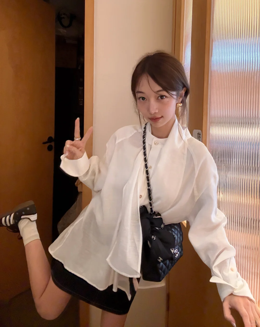 皮衣配白半裙