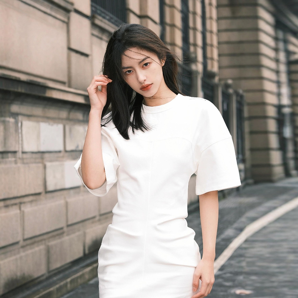 超好看韩系收腰白色连衣裙茶歇法式气质裙子