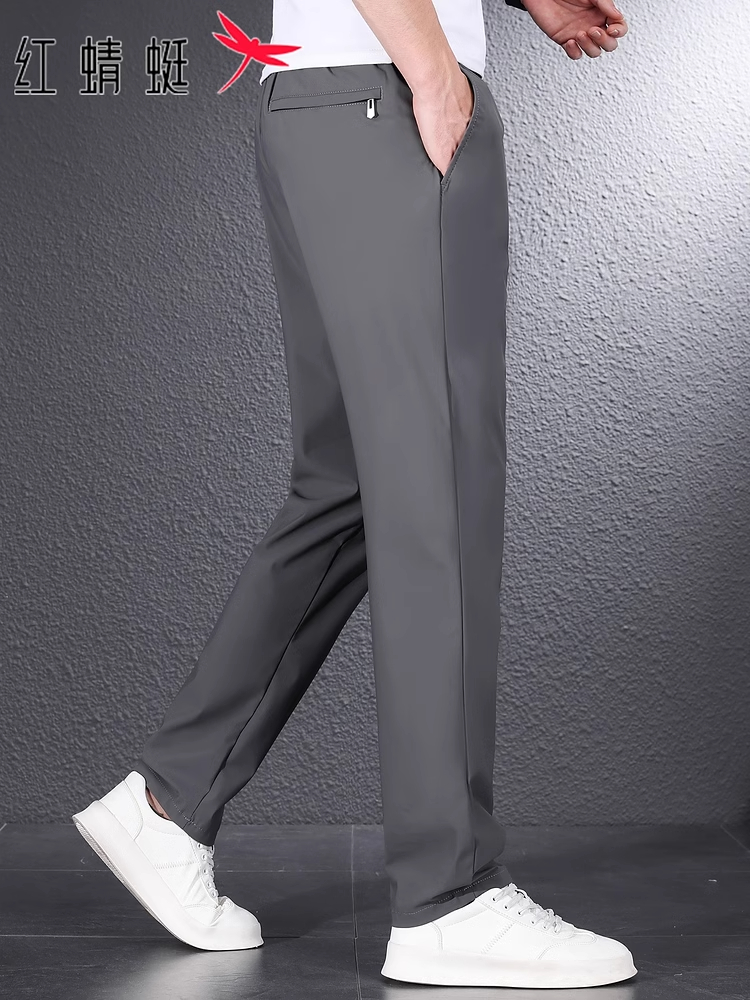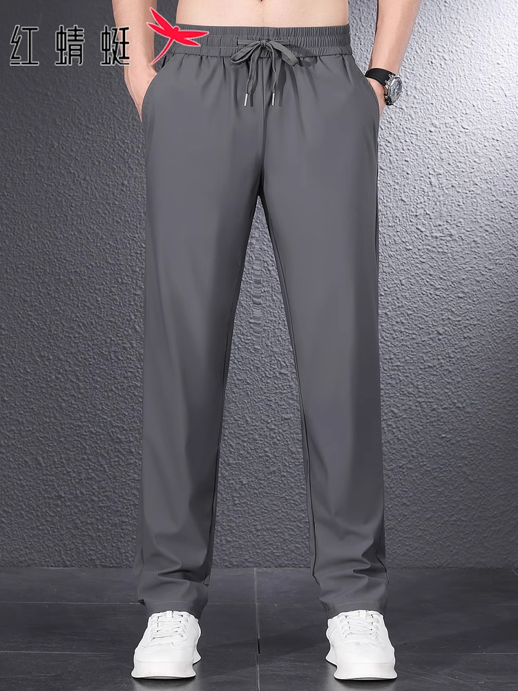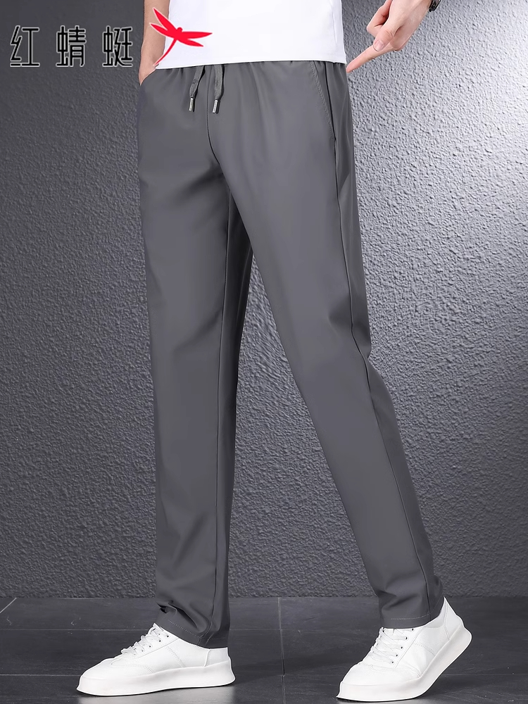 红蜻蜓冰丝休闲裤男士夏季新款潮流宽松长裤