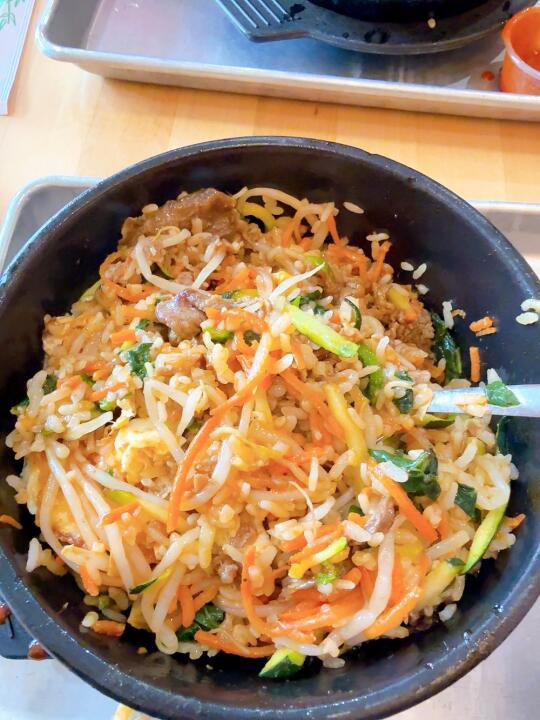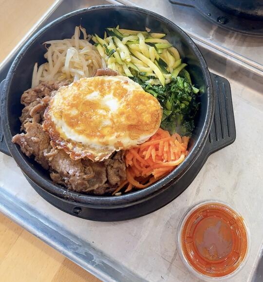 好开心又找到了一家超便宜的石锅拌饭店!这周我和妈妈打卡了湾区Sunnyvale的一家韩式石锅拌饭店Bibimbowl,是在google map上随便找的,发现分享的人也很少。到了以后发现很多在周围上班的人来这里吃午饭,因为性价比高、而且蔬菜和肉都有?一份拌饭$17,而且我觉得不用交小费(虽然当时我也交了[失望R]),因为是自己去前面点饭、自己拿水/纸、然后吃完自己把餐盘return回去,大家都交小费了吗?