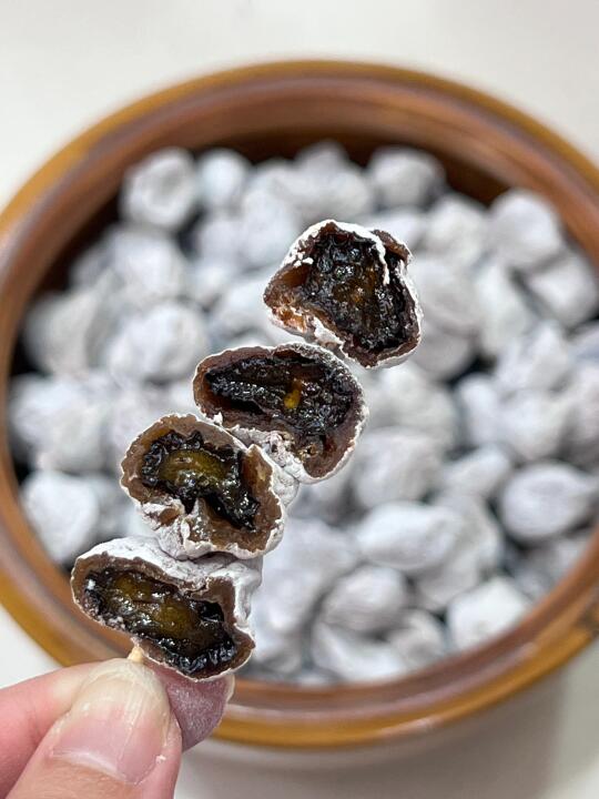 服了服了~ 爱吃蜜饯的妈妈,真的囤了一大缸这个青梅抱葡萄🍇 一打开盖子就直接疯狂分泌口水了🤤 听说现在300一斤了,真的真的巨好吃!!!梅子外面裹满了浓浓的陈皮粉,青梅夹着黑加仑,浓浓的花青素! 一口咬下去,酸甜后回甘,软软糯糯的 不吃真的会后悔😭