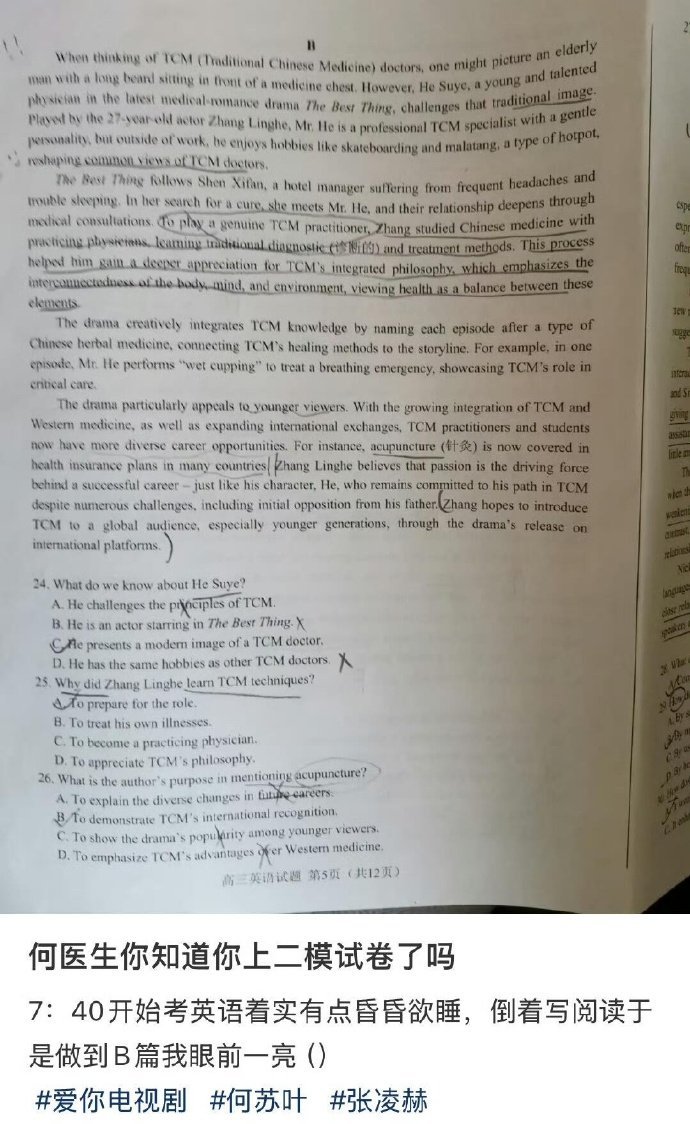 张凌赫《爱你》上报纸又成考题,影响力好大[good]