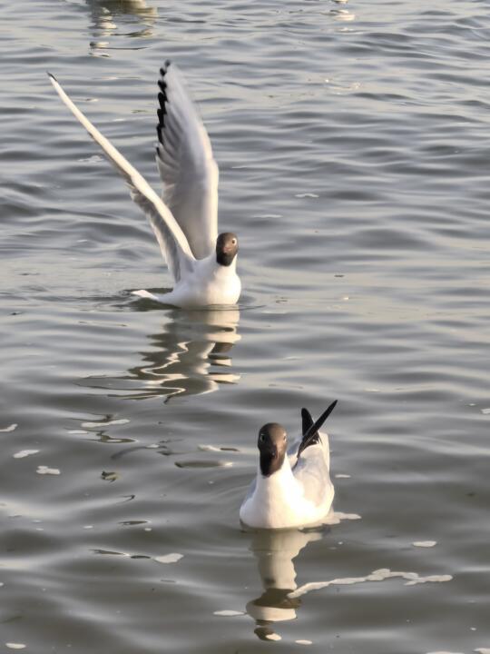 已经有不少红嘴鸥开启“换装”模式,头上披上了“黑头纱”,这是红嘴鸥性成熟的标志,意味着红嘴鸥即将启程离开青岛了。