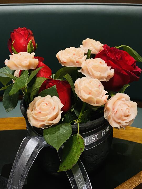 把鳕鱼鱼滑做成了玫瑰花状,十分赏心悦目!比虾滑更紧实弹牙!!!