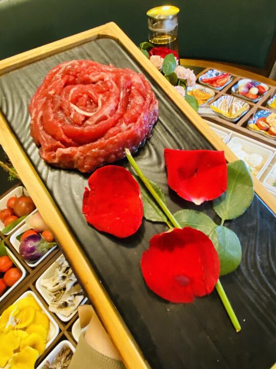 吊龙被安排成玫瑰花状,看了心情就好!关键是口感更好,一烫即熟,超超嫩的!