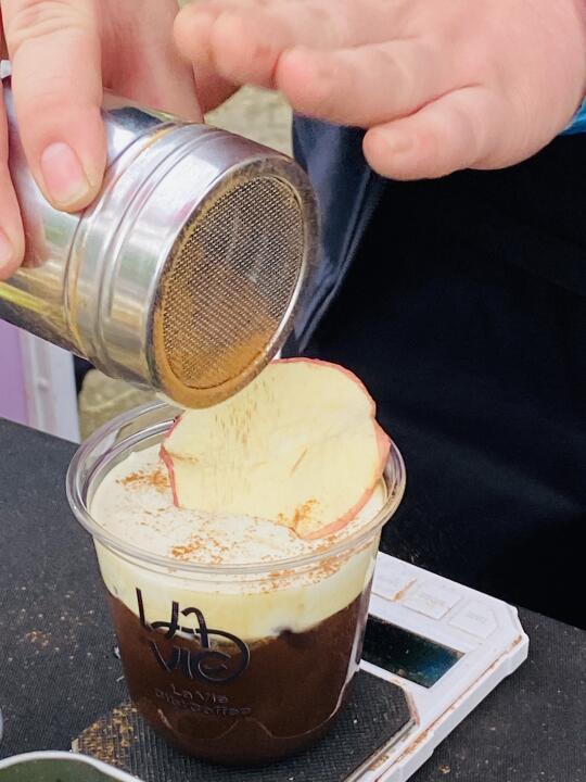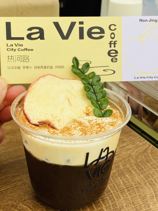 来自南京本土,硬正的南京味道哦!每款都有特色的名字,姐小时候住在热河路附近就选了这款!浓郁的燕麦芝士奶盖与微苦的soe咖啡交融,还有苹果🍎的微酸和肉桂的香气,赞爆了!