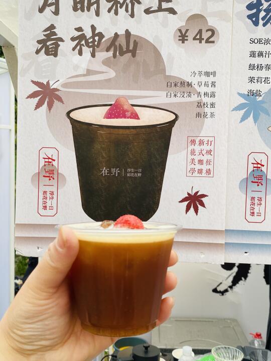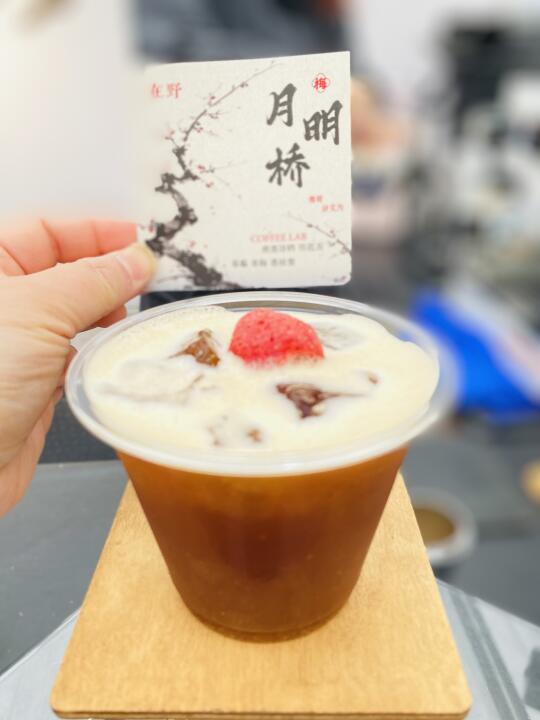 🌕来自扬州的咖啡品牌,当然要喝一下有着诗意名字的这一款了!加入了手工制作的草莓酱,和南京味道的雨花茶,还有青梅露和荔枝蜜,酸酸甜甜,层次相当丰富!