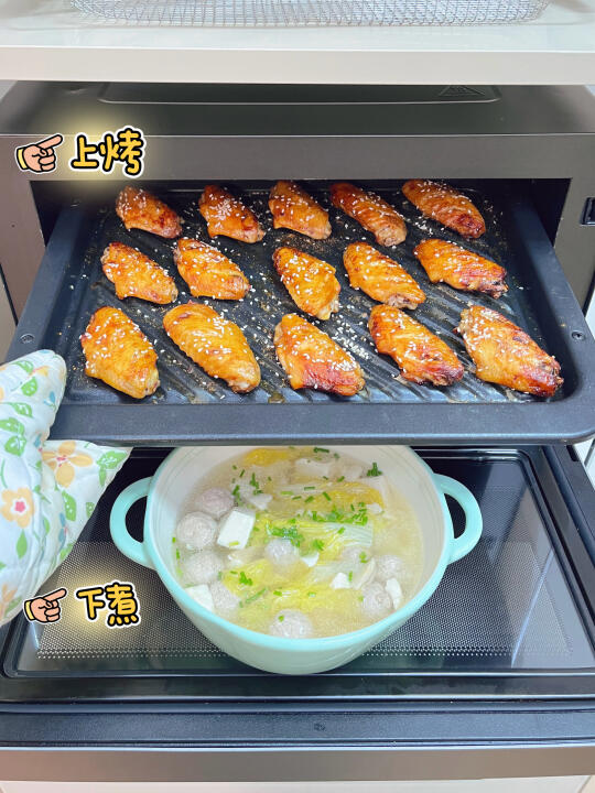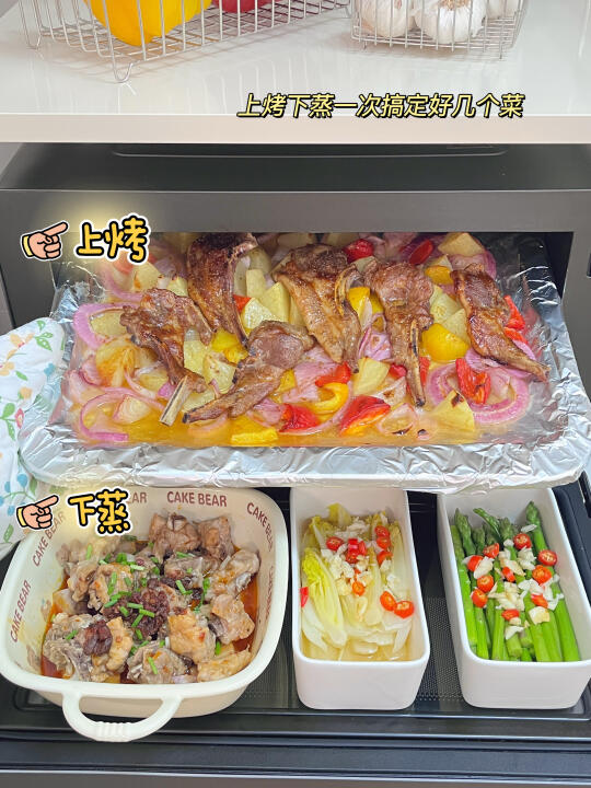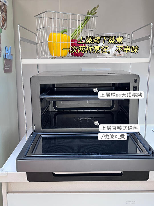 🤫别以为它只是集成了微波炉、烤箱、空气炸锅、蒸锅的功能,1台顶4台!节省了厨房空间!现在还有这种能上烤下蒸复合烹饪的王炸款!直接节省了一半的做饭时间!这不就是当代打工人和宝妈们的厨房神器嘛!
