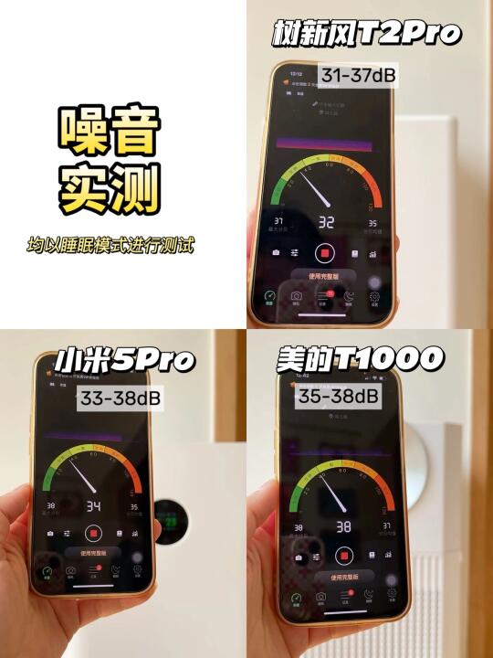 重点看睡眠档实测,低于35分贝就和猫咪呼噜声差不多,家里有娃的一定要选噪音小的!!
