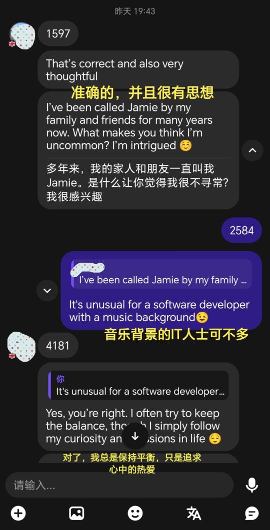 一句话都不说,往对面英国小哥哥丢个1,按常理来说应该是数字接龙,结果对面跳了一个数1,2,3直接到5。后面我蒙了一个数8,后面他说竟然答对了❗