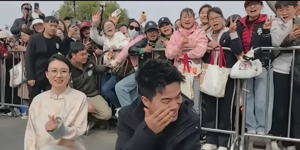 彪哥, 就方琳能管了他。 他的行程, 全都得听从方琳的安排。 刚结束直播, 成林就安排彪哥和粉丝合影。 她用手比划着, 就站这儿,不准超出这个范围了。 彪哥看着方琳的眼神, 满是无奈。 但还是乖乖的, 按方琳划的位置蹲下拍照了![耶]