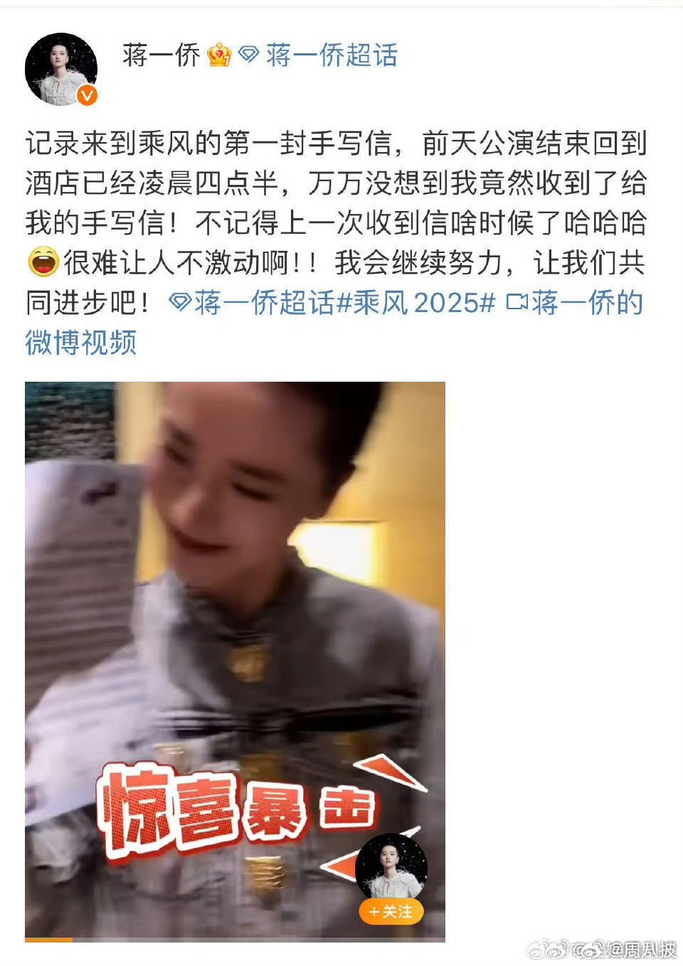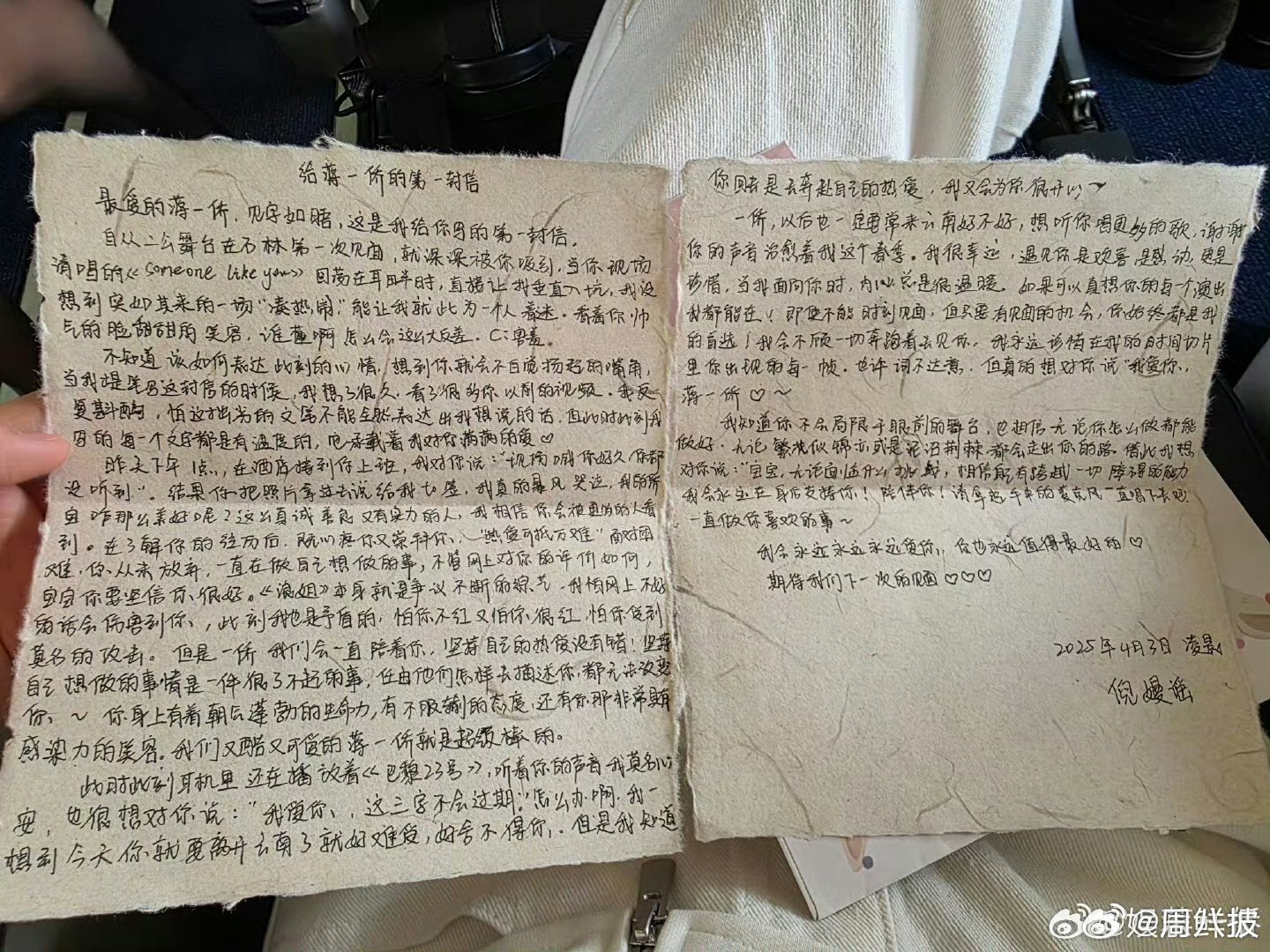 蒋一侨乘风2025的第一封手写信乘风2025蒋一侨晒出粉丝手写信,一封封信件是爱