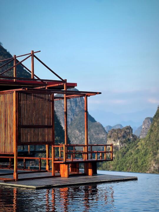 他们家是我认为在阳朔高奢酒店群里属于TOP1级别的,保持了悦榕庄的品质,酒店内也有很多活动,日落香槟、登山、竹筏等,也适合带小朋友。